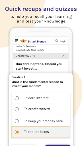 With crisply structured modules that build upon one another, Smart Money helps you cover the many milestones involved in learning about the stock market – one step at a time. You’ll love the features we’ve integrated into the app. They come together beautifully to complete your investing and trading education. Here’s a preview of the features you’ll love.