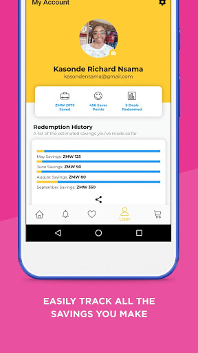 Keep track of how much you save with a savings tracker. This function accumulates your estimated savings from each use of the app.