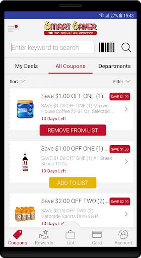 With Smart Saver OK app Claim as many coupons as you want with one simple scan! No more searching through mailers or printing out emails, SmartSaver OK is bringing rewards right to your mobile device!