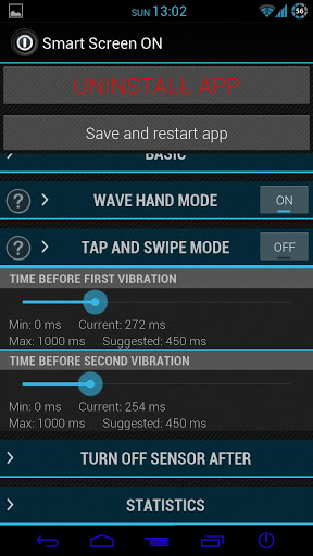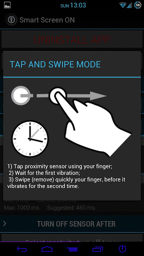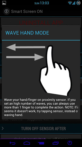 Smart screen ON is an innovative app which turns your proximity sensor into a power button. If you have a big phone with no physical button on the front(Galaxy Nexus for example, you can turn on or turn off the phone just tapping or waving your hand (finger) on proximity sensor.