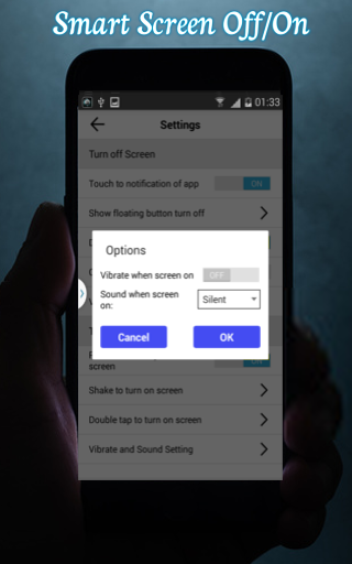 Smart Screen Off/On Lock - Turn Off Screen is a Double tap to unlock to turn on (unlock) or turn off (lock) your device’s screen easily. It will help you open or turn off the screen even if your phone’s power button (that’s used to turn on / turn off screen) is damaged or broken.