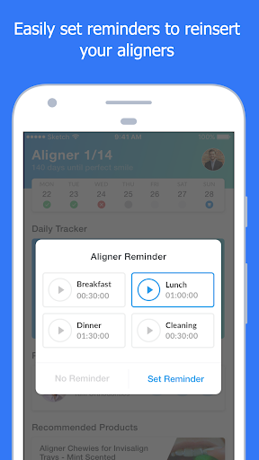 Easily set reminders to reinsert your aligners