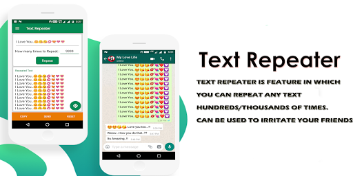 🔹Text Repeater :- Text repeater is feature in which you can repeat any text hundreds/thousands of times. Can be used to irritate your friends.