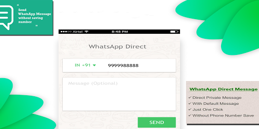 🔸Direct Message :- This is best and advance feature of this app, by using this feature you can easily send whatsapp message without saving number in your contacts.
