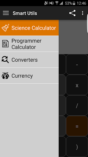 The smart utils has 3 calculators: a simple one, a scientific one and a programmer one; also it has converters from temperature to distance.