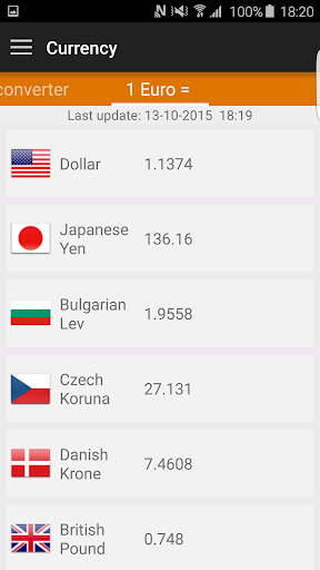 The money converter is real time connected to the world's currency and you can calculate your value in almost any currency of the world.