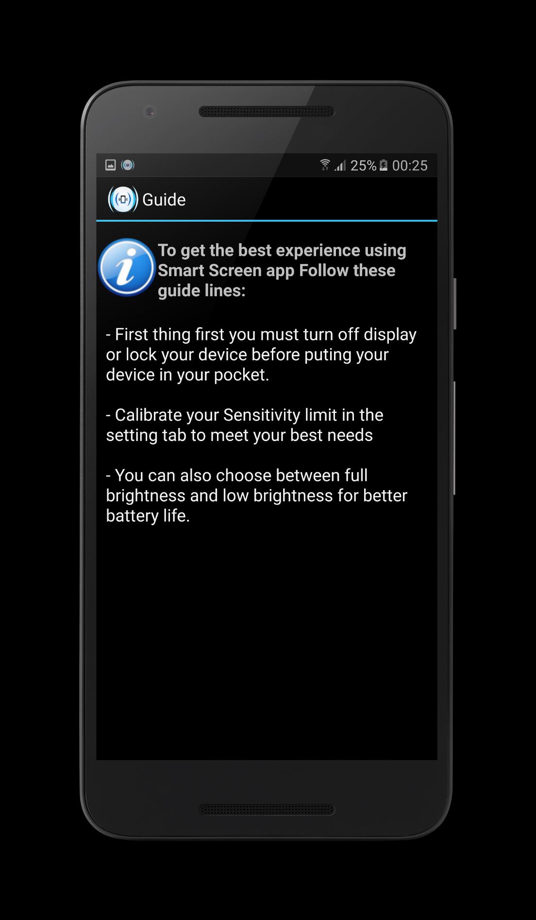 Note: Make sure to turn the lock-screen Guard or key-guard On (ie:Swipe unlock, keyguard...), also our Apps engine is inactive when your device's lock-screen is On and locked inside your pocked, so don't worry, our App is only active when the screen is unlocked !