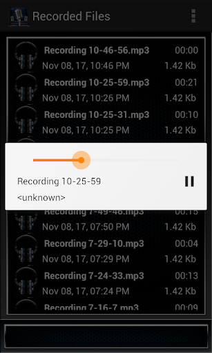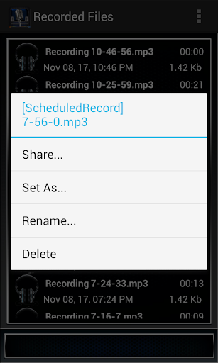 4) Easy to Access Record voice files and also option to play, rename , share, delete file from the app only.Click to play recorded mp3 file and double click to edit music file.