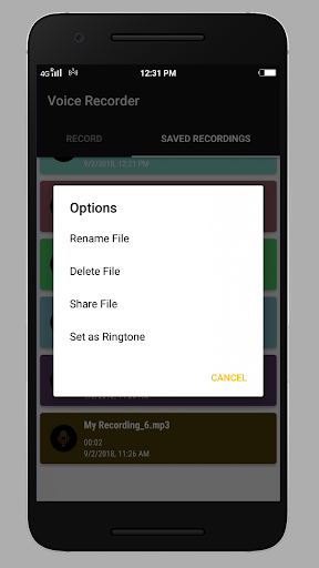 • Send / share a recording via email, sms, mms, facebook, whatsapp, dropbox with