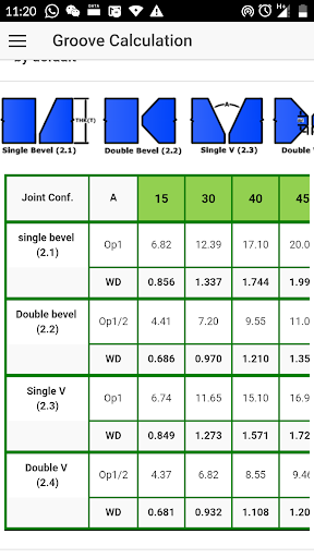 Joint configurations included in this app are grooves, fillets, ESSC and Hard facing or built up.