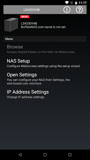SmartPhone Navigator allows you to search for Buffalo NAS devices (LinkStations and TeraStations) on a network that the mobile device is also connected to. You may also use the app to manage any detected Buffalo NAS devices from your mobile device.