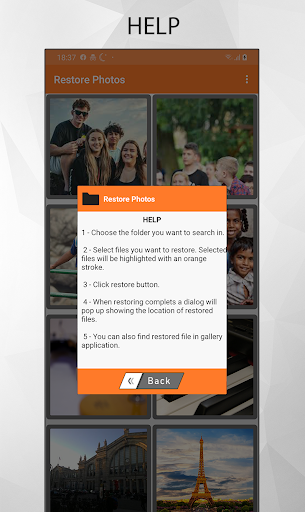 Recover your deleted photos again easily. SmartScan will search your storage for lost images and give you the ability to undelete them again easily. It works by scanning internal storage and SD card looking for any deleted files and list them for you.