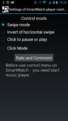 2) Click mode - just click on screen buttons to select next/previous track, increase/decrease music volume or play/pause.