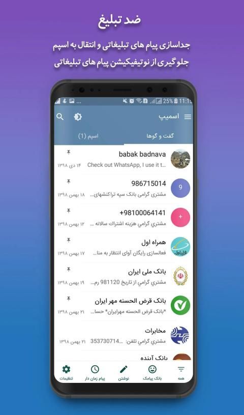 Smip automatically detects a lot of ad texts and deletes them from the chat list and move into the spam folder.