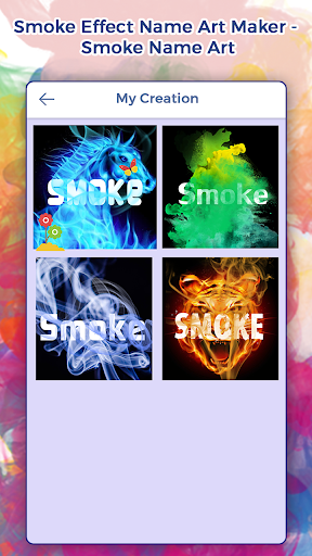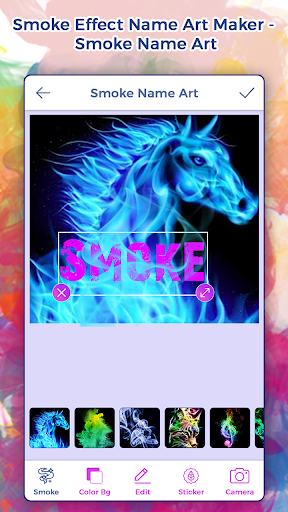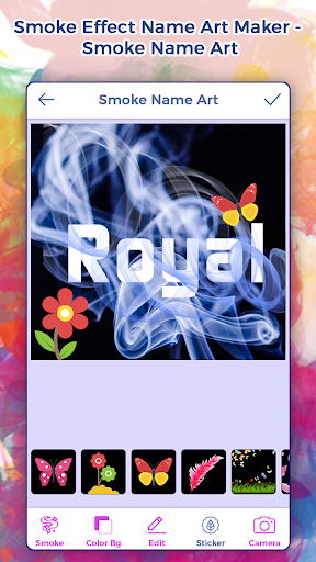 application. this application allows you to edit your name with most beautiful smoke art effects.this application have an amazing smokee effects with many more designs.this have also option to add awesome stickers to make your image more beautiful.