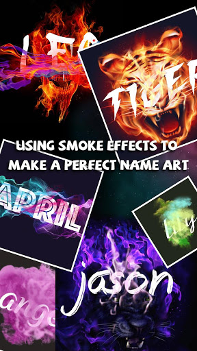 Smoke Effect Name Avatar Free - 3D Text Art Editor installed a large variety of smoke effects; abstract, neon, twilight, colorful, blue fire skull, fire flaming skull, red fire tiger, lightning, water drop, etc.