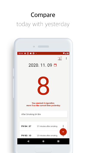 • Today confirmed the number and time of smoking cigarettes and check out your smoking time pattern