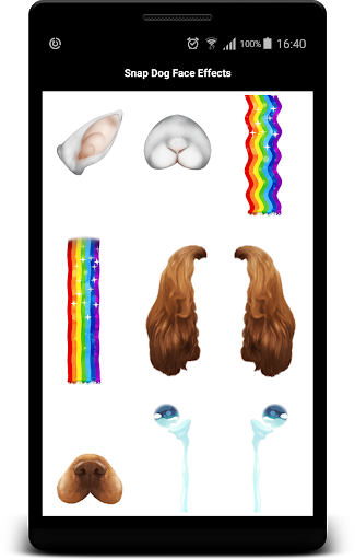 Snap Face Filters is a Photo Editor you can edit your Pictures with Dog Face, tounge, snout, Flower Wreath & Rainbows, Rabbit Ears & Cat Nose like you Face Swap with a Dog or other Animal. With Snap Filter you get over 100 cool Stickers and Snap Face Filters on Photos.