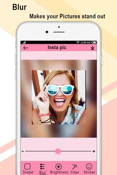 -Add different blur effect to your photo and make a insta square image with stickers and filter.
