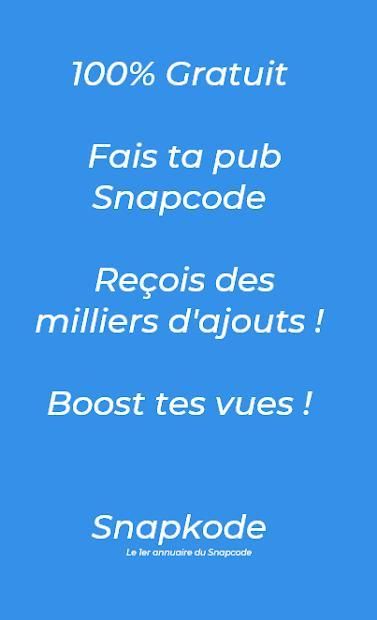 Vous allez pouvoir faire la publicité de votre Snapchat gratuitement et rapidement sans inscription, et gagner des milliers de nouveaux amis. Vos vues vont exploser grâce aux nouveaux amis que auriez gagner. Votre compte est supprimé après déconnexion ! Il faut rester en ligne pour avoir le plus d'ajouts !