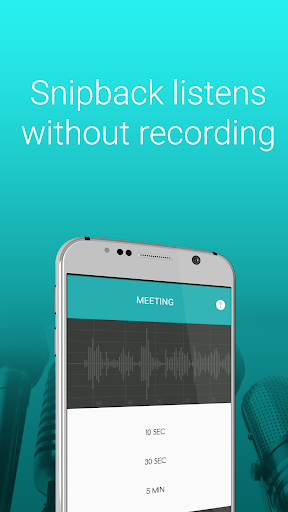 : Snipback is the smart revolution for lightweight audio recording. Sometimes, a simple voice recorder is not enough. You need an advanced, discreet, and very smart audio recorder. This lite, hd quality voice recording app helps you capture the highlights of any surrounding sound, audio, music or voice whatsoever, and turn them into quick and easy to access voice notes (small audio notes or fast voice memos). It's like having an HQ voice recorder that produces high quality and small wav files. It also removes background noise (noise cancelling). Moreover, this dictaphone app has a hidden microphone recording feature: it allows you to start mic recording with a black screen and take voice memos with a background recorder. Great for any abusive relationship, workplace bullying (mobbing) or even to capture sleep talk.