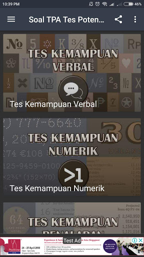 Aplikasi Soal TPA Tes Potensi Akademik Lengkap terdiri dari: