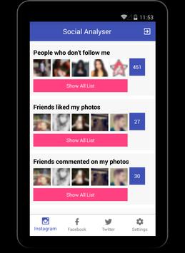Social Analyser App gives you the opportunity to see the people who follow you, the people who unfollow you and who are your new followers immediately.