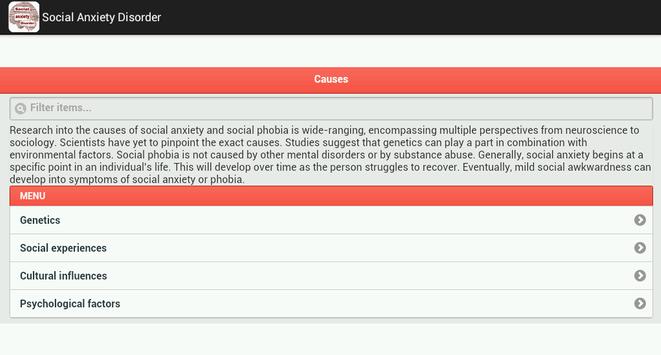 This app have complete information of Social Anxiety Disorder. Unreasonable fear of social situations is known as Social anxiety disorder. This app have lot of information of Signs and symptoms, Causes, Treatment & etc. This user friendly app will help you to Diagnosis Social Anxiety Disorder.