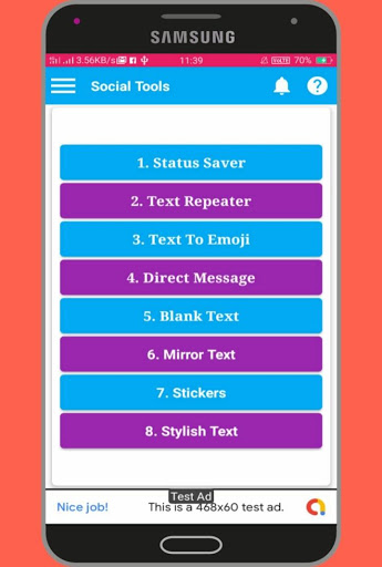this application is making for helping any social platform and this is specially for whatsapp amezing messaging trick.and you can downloading anybodies status without permission.you can sending blan message,repeat text,stylish font etc.
