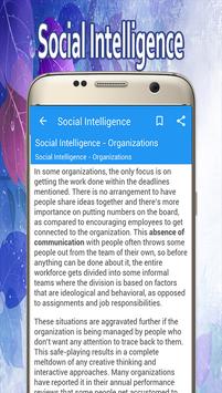 Social intelligence is the human capacity to use our brains to effectively navigate through complex emotional situations and negotiate different social relationships. It is an ability that helps us adjust according to different working environments. This Learn Social Intelligence App explains how social intelligence helps us deal with complex socialization processes such as politics, family relationships, quarrels, competition, collaboration, etc.