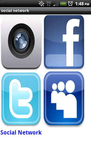 This is A simple application that will allow you to get to your facebook,twitter, or myspace in just a click of a button. This will also allow you to take a picture and share it through your camera to the social website, then just click the back button and see the picture you upladed.please take note that this is not custom made facebook, myspace or twitter pages. This just opens up the web broser the the designated webpage you picked please leave comment ad tell me if you like it or not and tell me what i could do better with this application