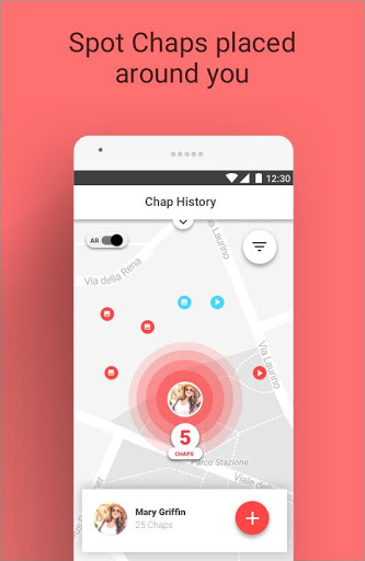 Chap is a new social network that allows people to share images and videos through the augmented reality concept. Users can post their experiences, memories, feedbacks, videos and normal photo shots of special places they may find on their way and share them with friends.Chap is a real community, a community without any kind of Fan Pages, Ads or anything else. A community where only real people talk about and share their stuff.
