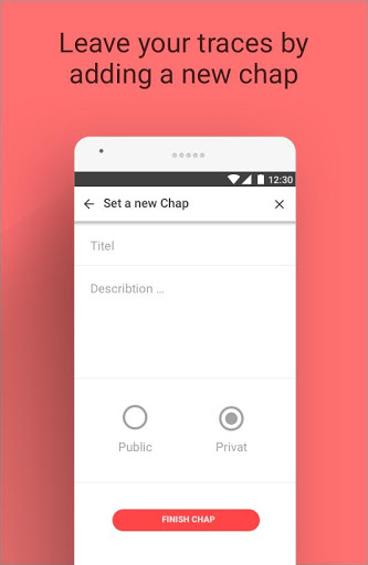 Create funny content or place insider tips around your City!By pressing on the plus icon, you can place a new Chap. You can decide who will see your Chap. There are two possibilities. You can create a Chap and tag it as a public Chap so every Chap member will get a notification once he passes by. If you would like to place a Chap which only selected people can see, just tag your Chap as a private one and choose from your friends list who should see it.