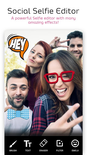 includes tools to add filters, Stickers, add text & Brushes. All tools have a brush mode for fine-tuning & applying selectively on just part of your photo. Social Selfie editor provides 100s of fonts for adding text to your pictures & creating memes. Social selfie editor