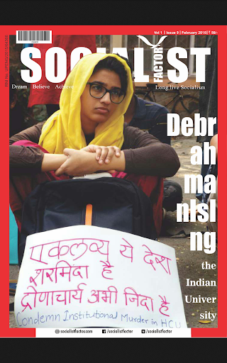 Fight for Socialism..Socialism is the only solution to sorrow of people!Welcome to the New Voice of democracy and socialism. The Socialist Factor brings to you, every month, the bouquet of refined thoughts on burning issues of global democratic socialist movement. From the roof of the blue sky to the bosom of the deep sea waters, from the fields of farmers to the factories of labourers, from the rampart of forts to dusty village streets, from the gallery of gender equality to salon of crusaders, from the utopia of moralist to paradox of personalities, we present before your curious minds a lively panorama of struggle and sacrifice, dream and desires, thought and action, idea and event, portraits and performance.