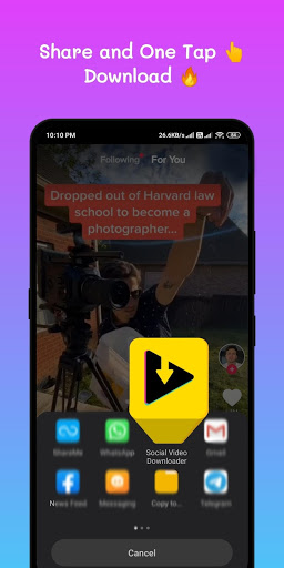 Using Social Media Video Downloader Without Watermark 🏆 App you can easily download social media videos and share with your friends easily without any watermark.