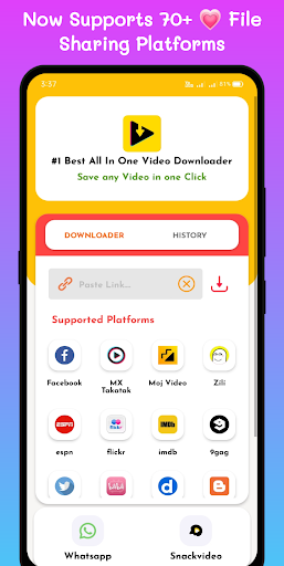 Now Supports almost all social media platforms and can be used to download Snack Video download without watermark, TikTok Video download without watermark, Sharechat Video download without watermark, Roposo Video download without watermark.
