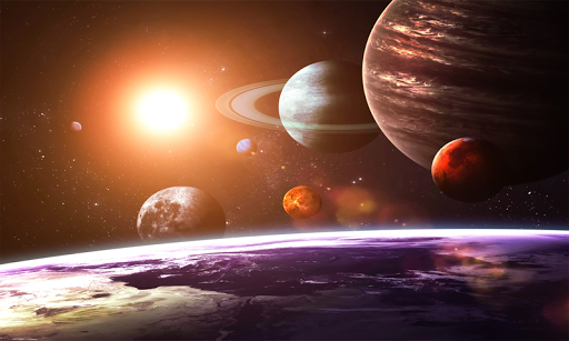 This is a 3D space live wallpaper of the Solar System that shows each planet spinning around its axis and, if enabled, the relative motion of the Sun.