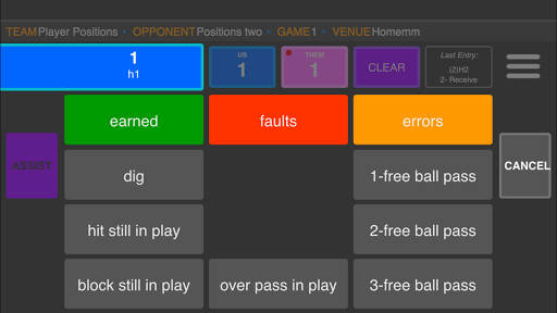 Stat as fast as the rally. Don't miss a single touch with the thumb based input for capturing stats. Place your key players under your thumbs, memorize their locations and stat "Heads Up". Now you can Stat Fast and Win More!
