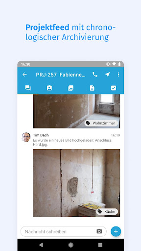 Im Unternehmensfeed werden darüber hinaus projektübergreifend alle wichtigen Infos dargestellt. Damit alle Monteure ihr Projekt selbständig dokumentieren können, können Sie gratis weitere Mitarbeiter zu Ihrem Firmenaccount hinzufügen.