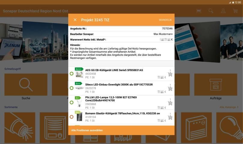 - Angebotswandlung: Sehen Sie eine Übersicht Ihrer Angebote, die Angebotsdetails und bestellen Sie diese.