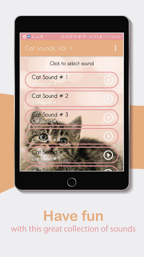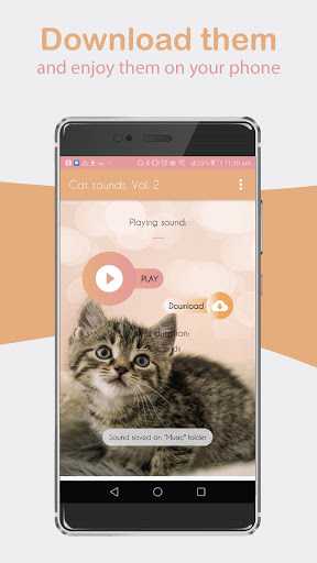 It is already in the Play Store available to download our new cat sounds for cell phone application for free, enjoy our new app with cat ringtones for cell phone (use them as ringtones, SMS tones, alarm or notification) and enjoy these great meows. Download it right now and enjoy all the content.