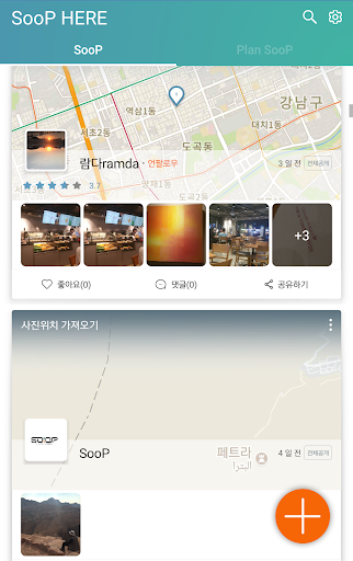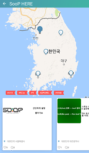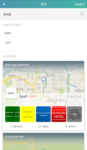 4) Auf der Karte können Sie im Umkreis von 10 km von meiner Umgebung suchen. Bei der Suche können sowohl Benutzer / SOOP / Plan SOOP / POST mit dem Schlüsselwort durchsucht werden, und Sie können problemlos spezifische Informationen mit erweiterter Suche finden.
