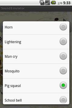 This app can emulate various kinds of sound such as baby cry,cough,fly,whistle,hiccup and so on. Select one of these sounds and then click on the gramophone to play it. You can use the app to fool your friends or just play for fun!