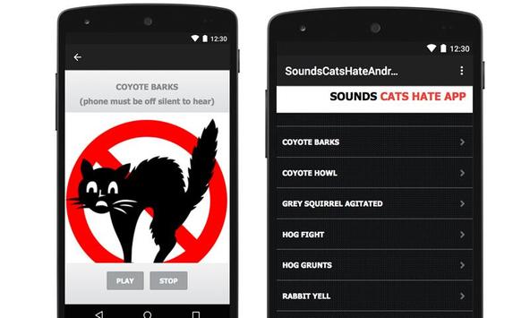 The Sounds Cats Hate - Cat Repellent Sound - Anti Cat Repeller app has sounds that cats hate such as, high pitched sounds, annoying sounds, dog noises, dog barks and dog sound effects for repelling cats at your fingertips.