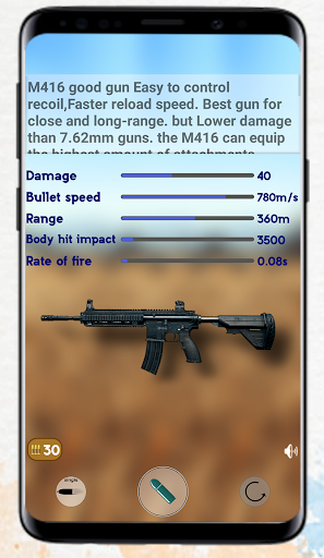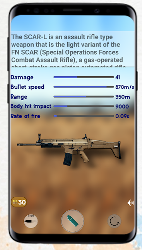 The application includes 45 different types of weapons, you can click on any weapon to learn the following: