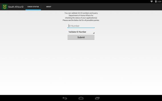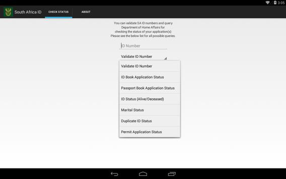 Disclaimer: This app is not affiliated with the Dept. of Home Affairs in anyway, nor supported. If for any reason the data received does not reflect what you're expecting please check it directly on www.dha.gov.za which has the relevant contact details and procedures to follow if it's incorrect.