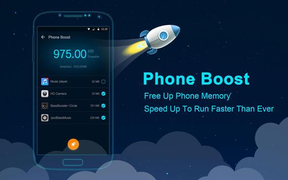 With one-tap boost helps to speed up you device by freeing up the RAM. This speed boost makes your device reborn with better user experience.
