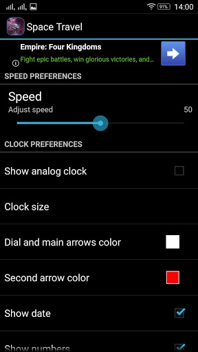 - Option to choose the clock color, to show / hide date, to show / hide the clock numbers, clock size etc.