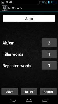Forget the old caveman way of counting ah's. Simply, click on the buttons on the Ah Counter tool to count ah's, em's, fillers and repeated words. Click on Save to save the Ah Counter record. Saved records can be viewed in the Ah Counter Report.